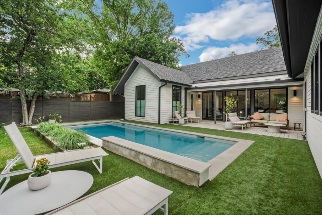 Built by The Muskin Company and designed by acclaimed local architect Don Harris, this 4-bedroom, 3-bath home sits peacefully on a quiet, tree-lined street and is surrounded by mature shade trees. From the inviting front porch and private courtyard to the L-shaped layout that wraps around a serene pool and patio, every detail of this home was designed to create a warm, stylish retreat.